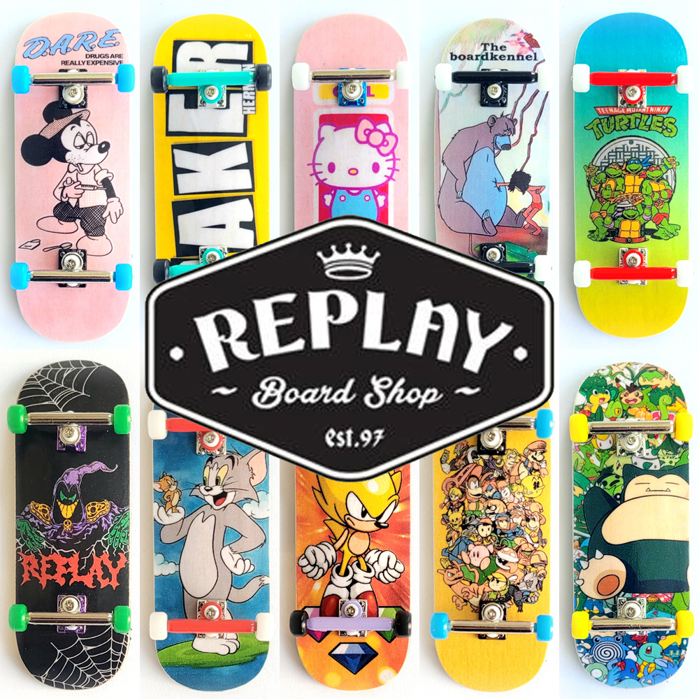 Check out these custom split top plys with Replay Boardshop and Boradkennel Graphics (top ply selection is random).